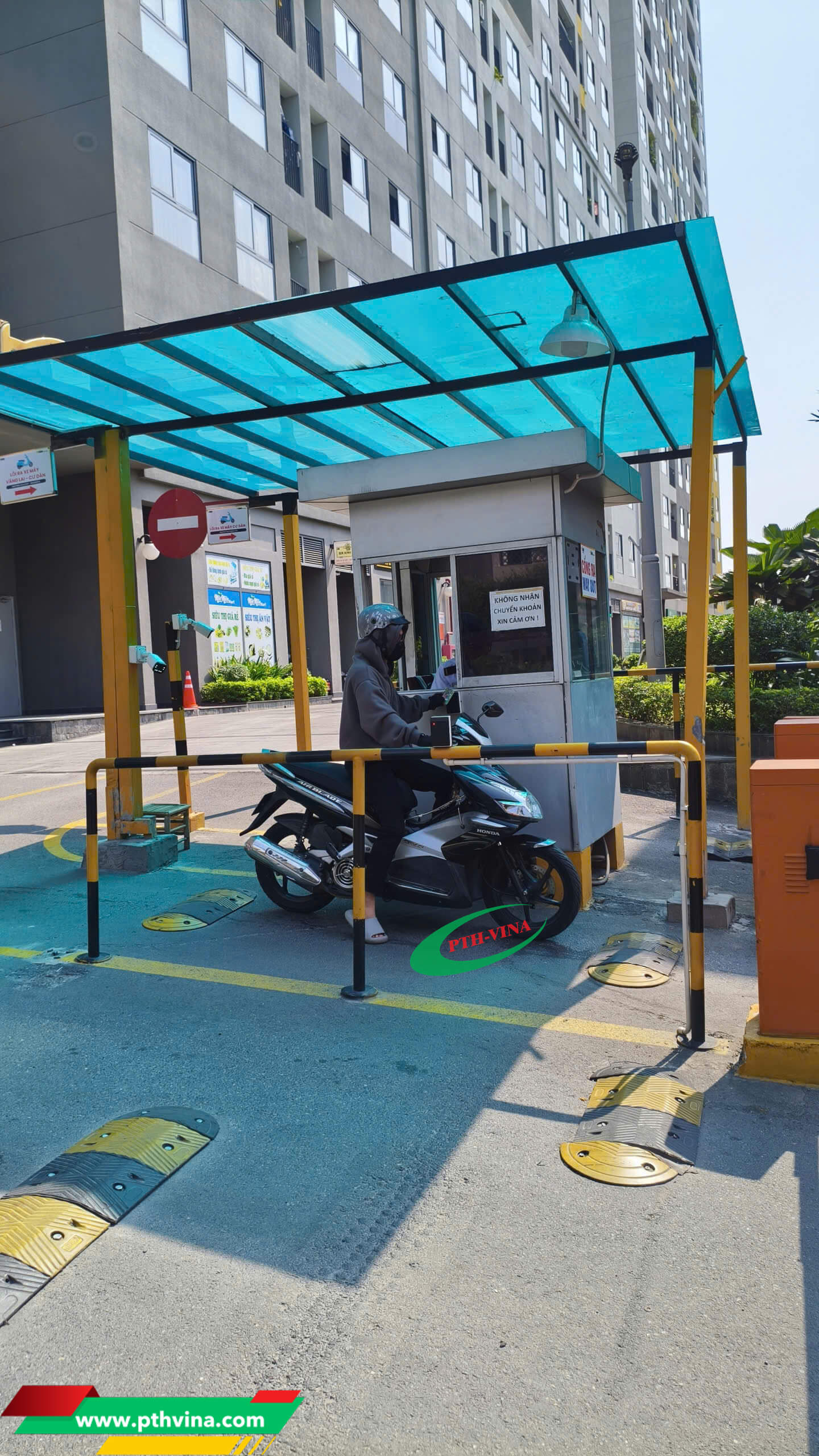 - Quy mô: khoảng vài trăm xe máy, 1 làn vào – 1 làn ra, dùng barrier tốc độ thường.